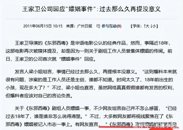 王家卫公司没有正面回应这件事,只是说事情过去太久,再提也没有意义。